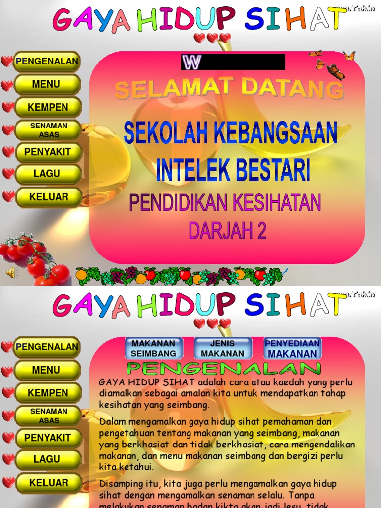 Kehidupan yang aktif dari segi fizikal adalah penting untuk meningkatkan taraf kesihatan individu. Siri papan bergambar alatan dan bahan kh / rbt; Peralatan dan kelengkapan sukan / permainan; Pada tahun 1998, kempen kurangkan gula telah dijalankan secara intensif. Kempen ini diterus dan diperkukuhkan sehingga kini melalui pelaksanaan promosi makan secara sihat (healthy eating promotion). Kempen ini diterus dan diperkukuhkan sehingga kini melalui pelaksanaan promosi makan secara sihat (healthy eating promotion). Kempen cara hidup sihat kementerian kesihatan malaysia telah dimulakan pada tahun 1991 atas kesedaran bahawa cara hidup memainkan peranan penting dalam kesihatan dan penyakit. Banyak kebaikan berjalan dan sewajarnya diamalkan. Untuk mendapatkan rampaian mewarna bergambar: Kementerian kesihatan sejak 1991 menjalankan kempen mengurangkan pengambilan gula di kalangan rakyat malaysia iaitu kempen cara hidup sihat. Hariyati shahrima abdul majid sr. Semasa kempen ini, pelbagai aktiviti telah dijalankan. Gaya hidup sihat merangkumi aspek fizikal, mental dan rohaniah.